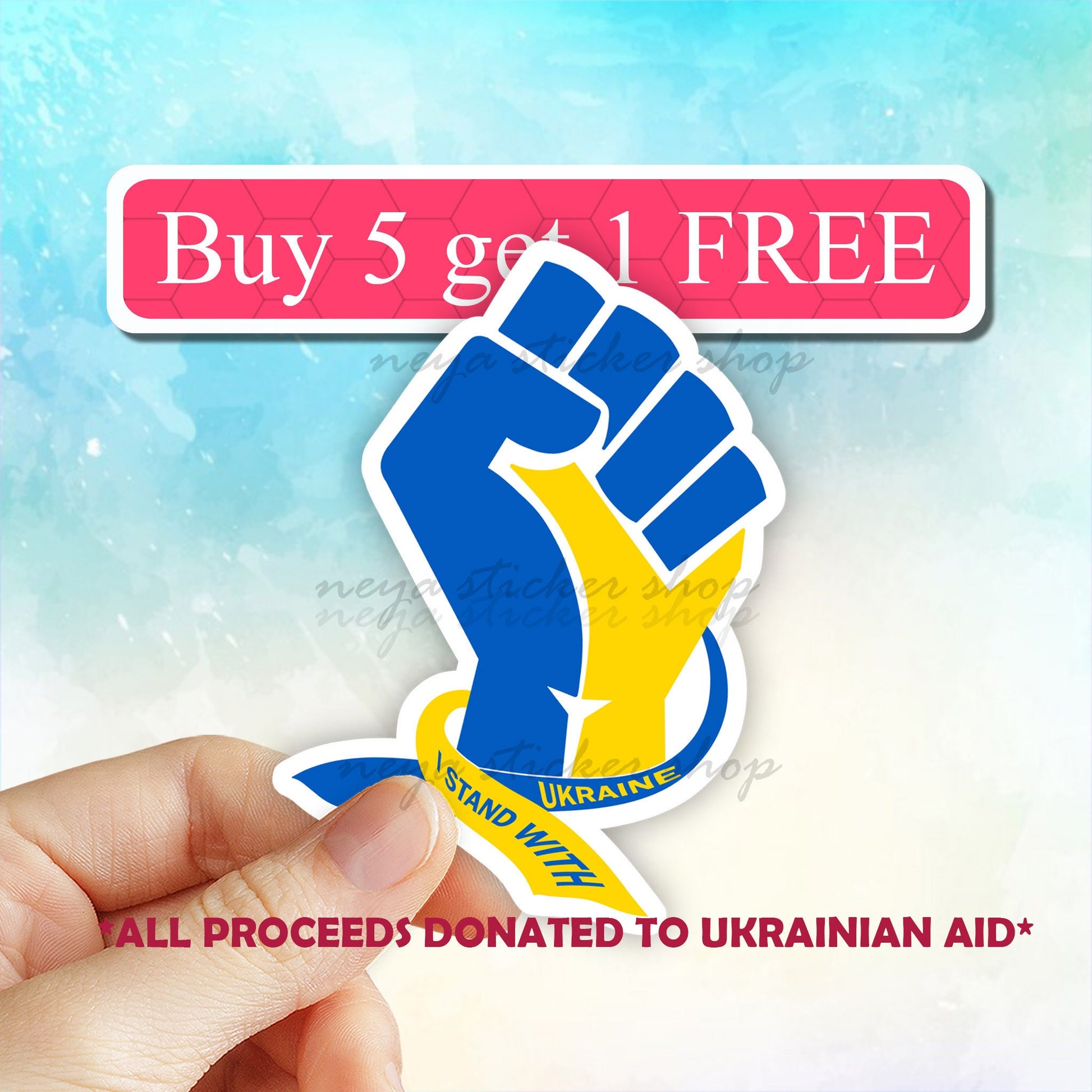 Fist I stand with Ukraine hand sticker, Support for Ukraine, Solidarity with UKRAINE, Water Bottles decal, Laptop Tumbler decal, fuck putin